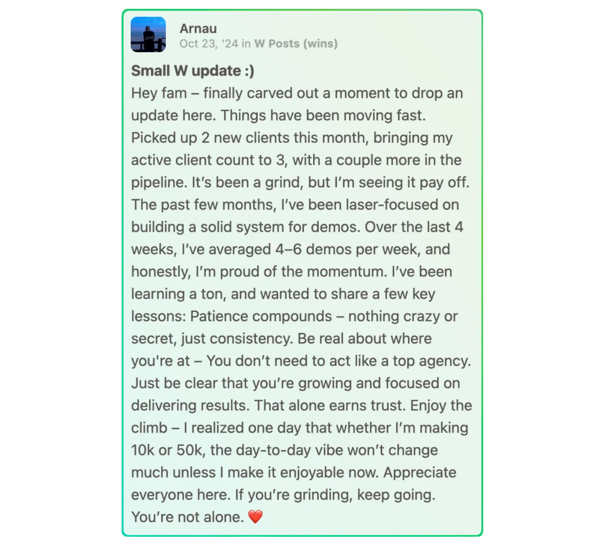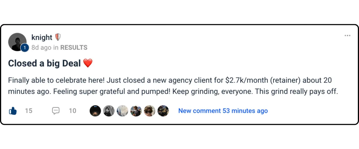 Plug into a private network of 2,000+ action-takers who bounce ideas off each other, share wins, and strategize together — so you can grow faster, stay accountable, and never build alone.